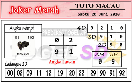 Prediksi Joker Merah Sabtu 20 Juni 2020